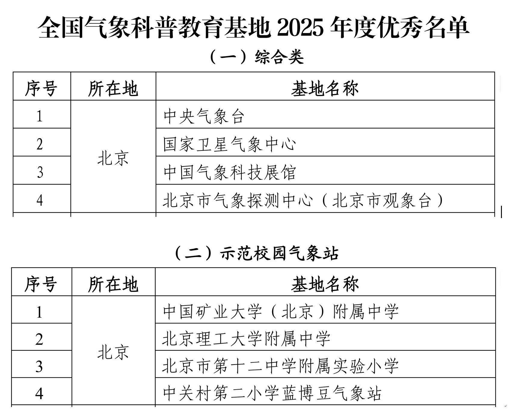 喜报 | 北京四家单位入选“第九批全国气象科普教育基地” 2025-10-16